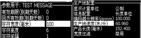ii. 可通過預(yù)先設(shè)置的字符寬度,并不斷修改生產(chǎn)線速度值,通過測量噴印信息 的實際寬度,當(dāng)達(dá)到信息參數(shù)中字符寬度的設(shè)置值時,即得到了生產(chǎn)線速度的準(zhǔn)確值。