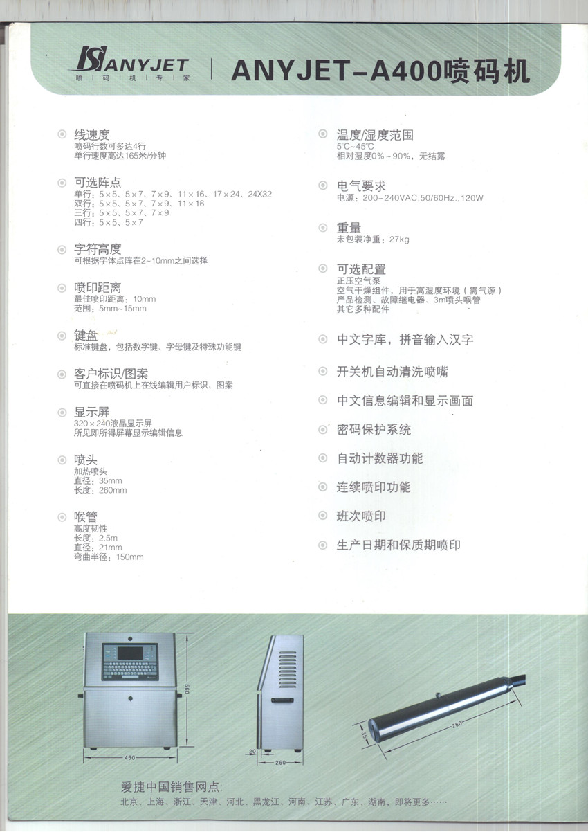 - 愛(ài)捷ANYJET-A400+ 小字符噴碼機(jī)